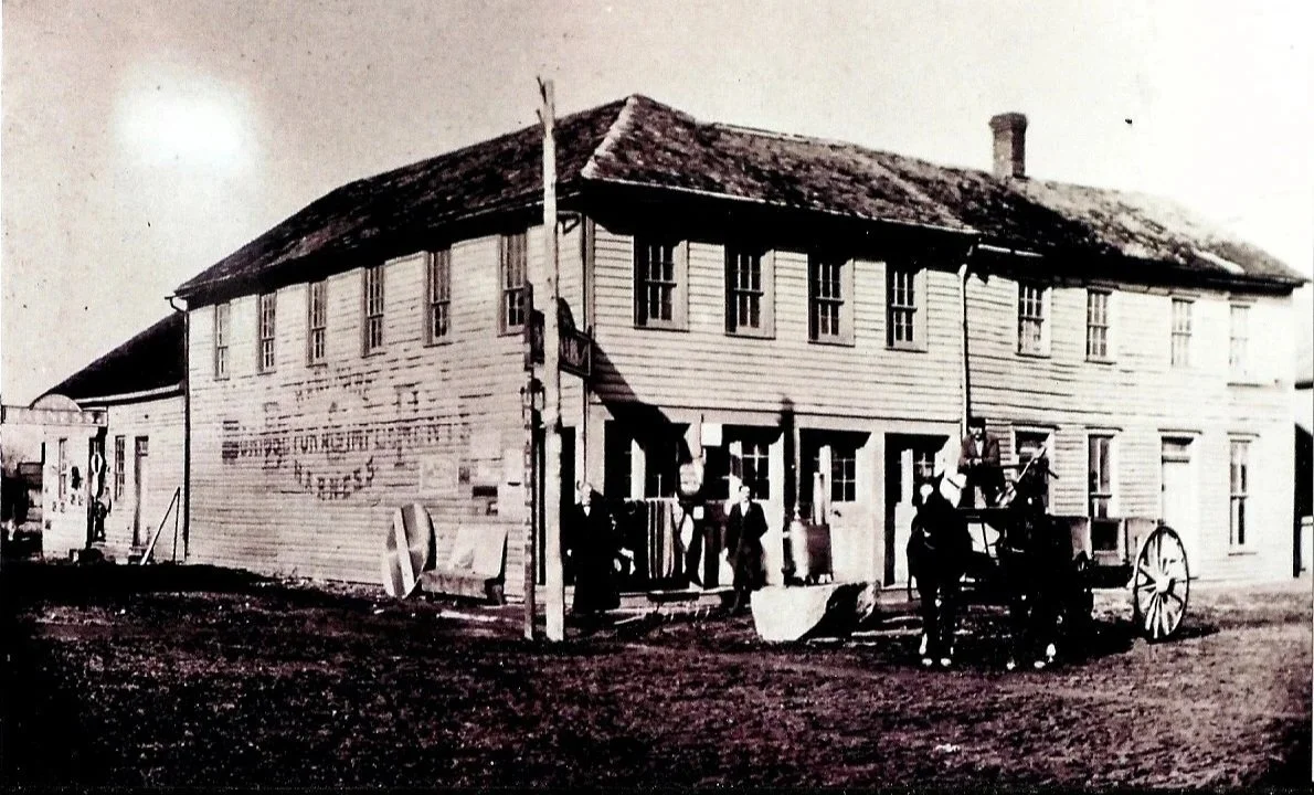 Construction at the David Fife Opera House started in 1898 and finished in 1901. In the building David Fife operated a hardware store on the ground floor. Upon completion the opera house seated several hundred in a building that measured 55 X 70 feet. The raked floor was filled with upholstered, red leather theater seats. Audiences were cooled by electric fans in summer and heat provided by a coal furnace kept them warm in cooler weather. The two original ceiling fixtures included a mirrored collar which reflected the glow of the high wattage light bulbs. At the west end of the building is the stage with a 25-foot long opening and 15-foot high, the stage is encircled by 25 lights.