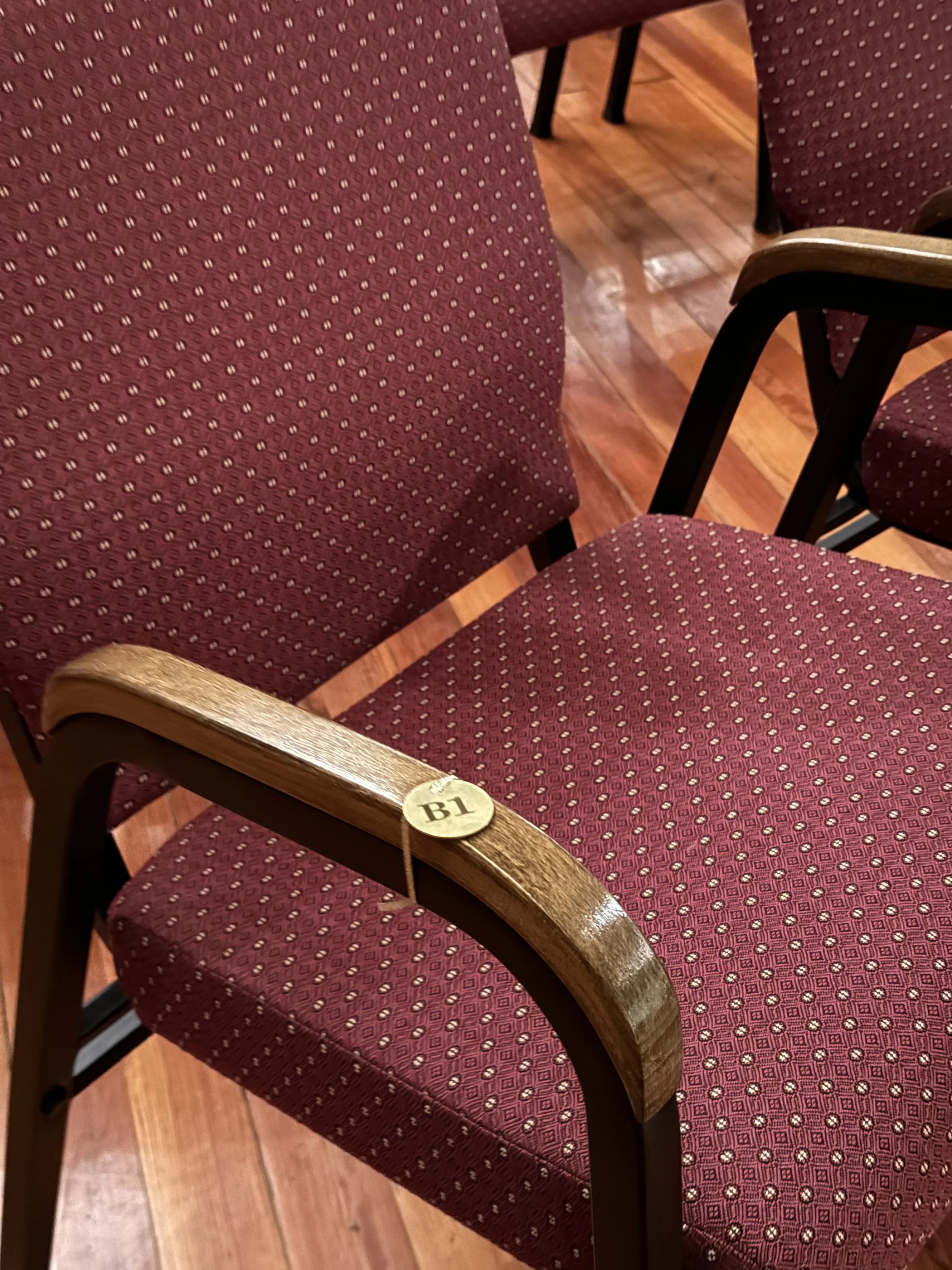 Comfy numbered chairs, with a seating chart ready to go, a sound system, piano and more.